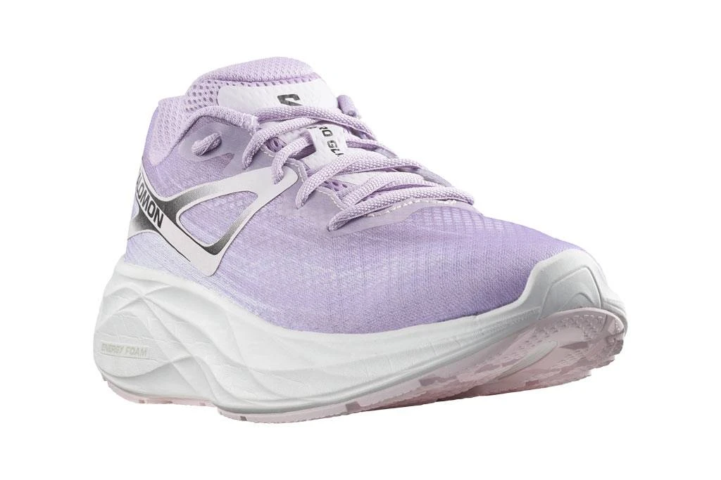 Auf den ersten Blick fällt die Sohlendicke des SALOMON Aero Glide (Damen) auf. SALOMON setzt in der Zwischensohle des Aero Glide auf einen Dämpfungsschaum mit hoher Energierückführung. Zusammen mit der Rocker-Konstruktion wird so eine gleichmäßige und komfortable Abrollbewegung unterstützt. Der Neutralschuh bietet beim Laufen eine gelungene Mischung aus Führung und Dynamik.