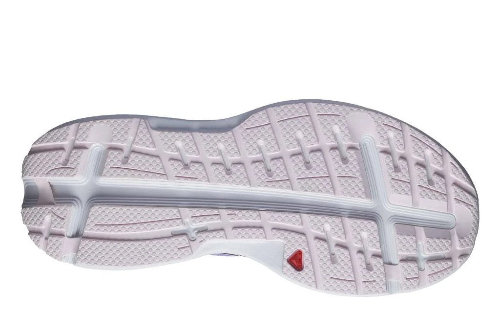 Sohlentechnisch hat der SALOMON Aero Glide (Damen) die Contagrip-Außensohle in der Straßenversion am Start. Über die komplette Sohlenlänge kommen breite, flache Elemente zum Einsatz, die auf harten Untergründen guten Grip geben.